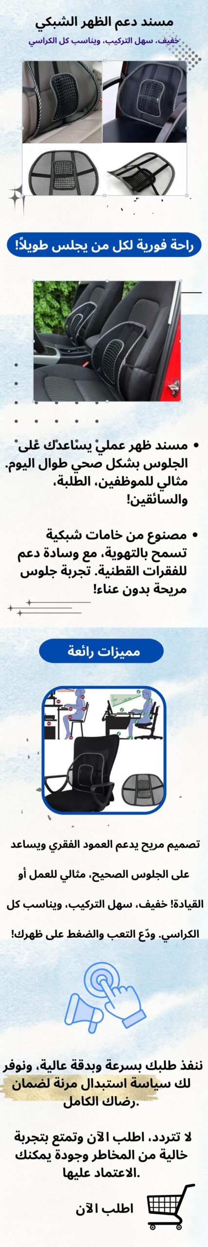 مسند ظهر طبي شبكي قابل للتركيب"راحة، دعم، وتحسين للجلوس… بلا صداع!"